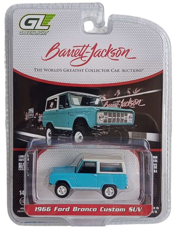 Strona główna » Greenlight 1:64 » Barret Jackson » Greenlight 1:64 Ford Bronco Custom SUV 1966 turquoise blue